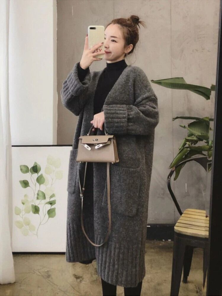 送料無料 2023 冬服の女性のセーター無地 V ネックミッドレングスニットカーディガンコートセーター特大カーディガン ウィンター 冬物 Vネック ソリッドカラー AE0807782467914562 | 女性の為の通販サイト-fashion navi
