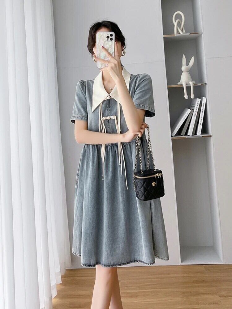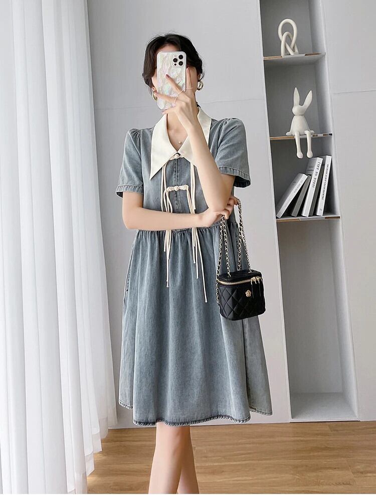 送料無料 ドレスの女性 2023 春夏イミテーションデニム特大ヴィンテージドレス膝丈服 スプリング 春物 サマー 夏物 ビンテージ AE0807791734270145