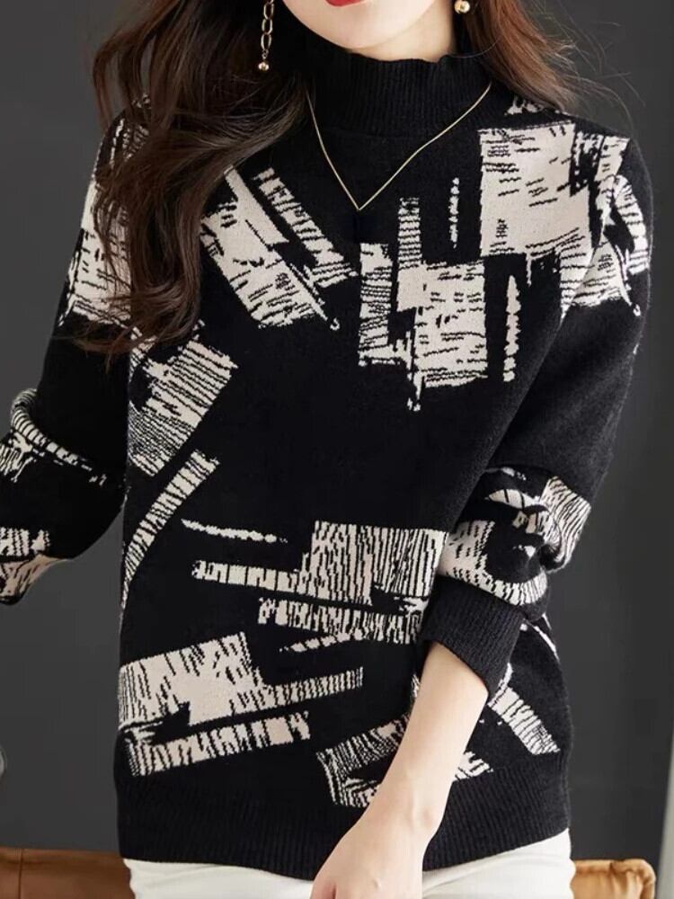 送料無料 セーターの女性 2023 秋冬ジャンパー長袖モックネックセーターレディトップ特大プルオーバー ロング オータム 秋物 ウィンター 冬物 AE080771788044385