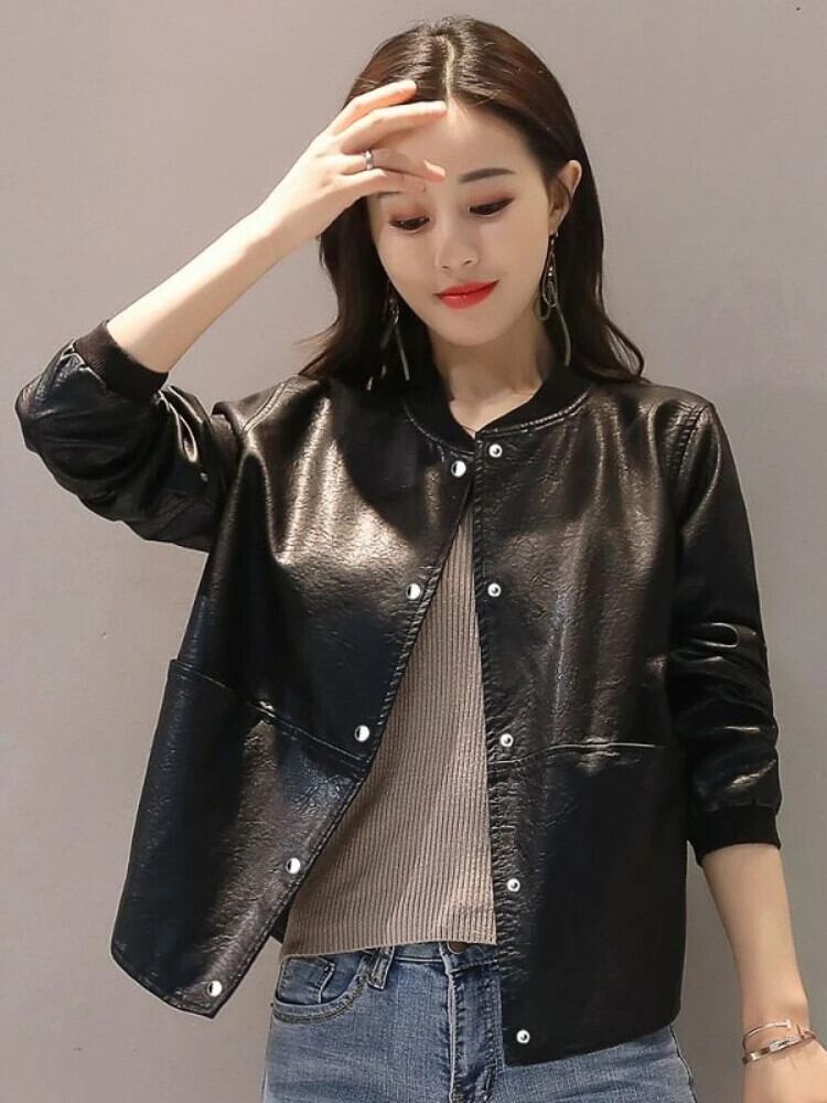 送料無料 黒革のジャケットの女性 2023 秋暖かい上着 PU ジッパーヴィンテージストリート服コート女性 ブラック オータム 秋物 レザー ビンテージ AE0807717744811764