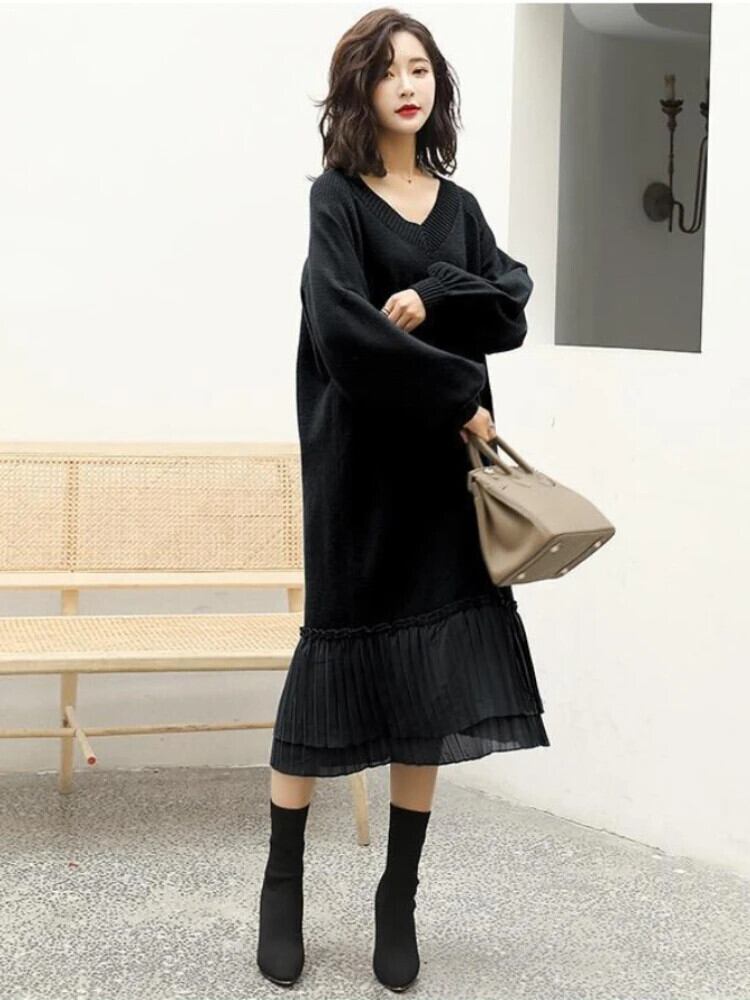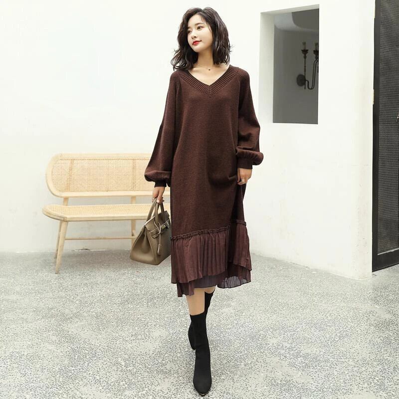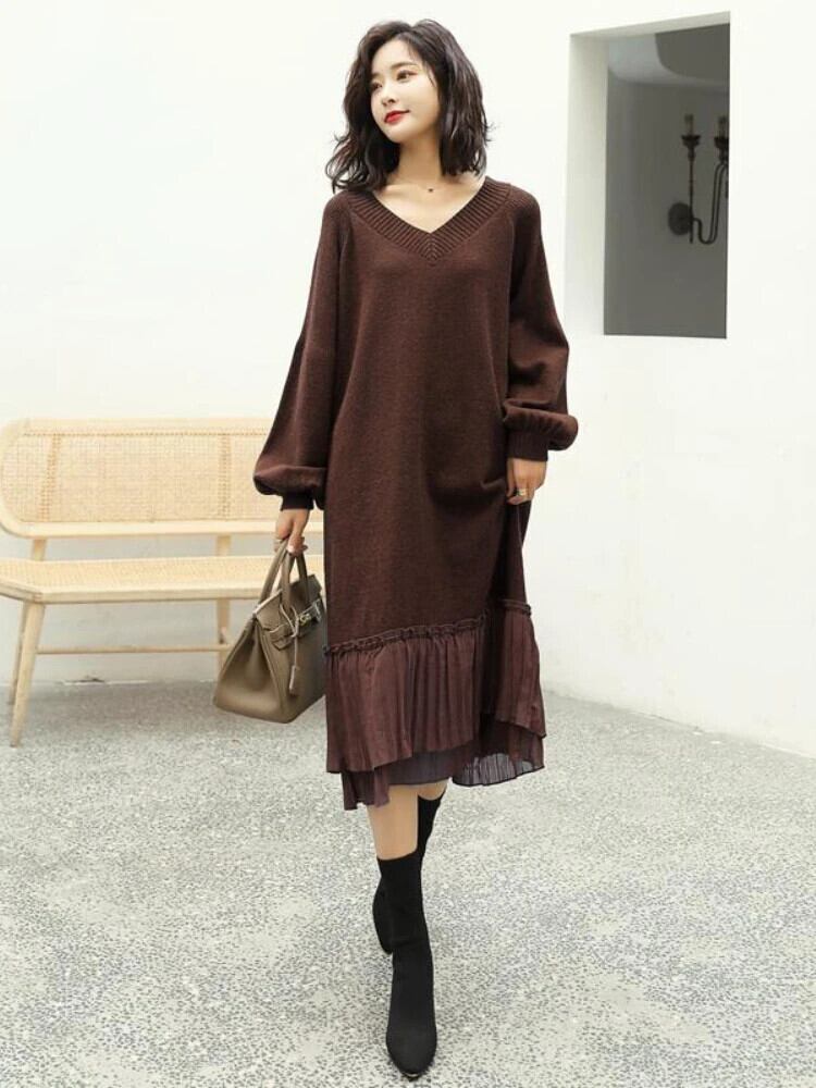 送料無料 ドレス秋冬バージョンルーズニットスカートパーティーミッドレングススリムセータードレス オータム 秋物 ウィンター 冬物 AE0807766765262451