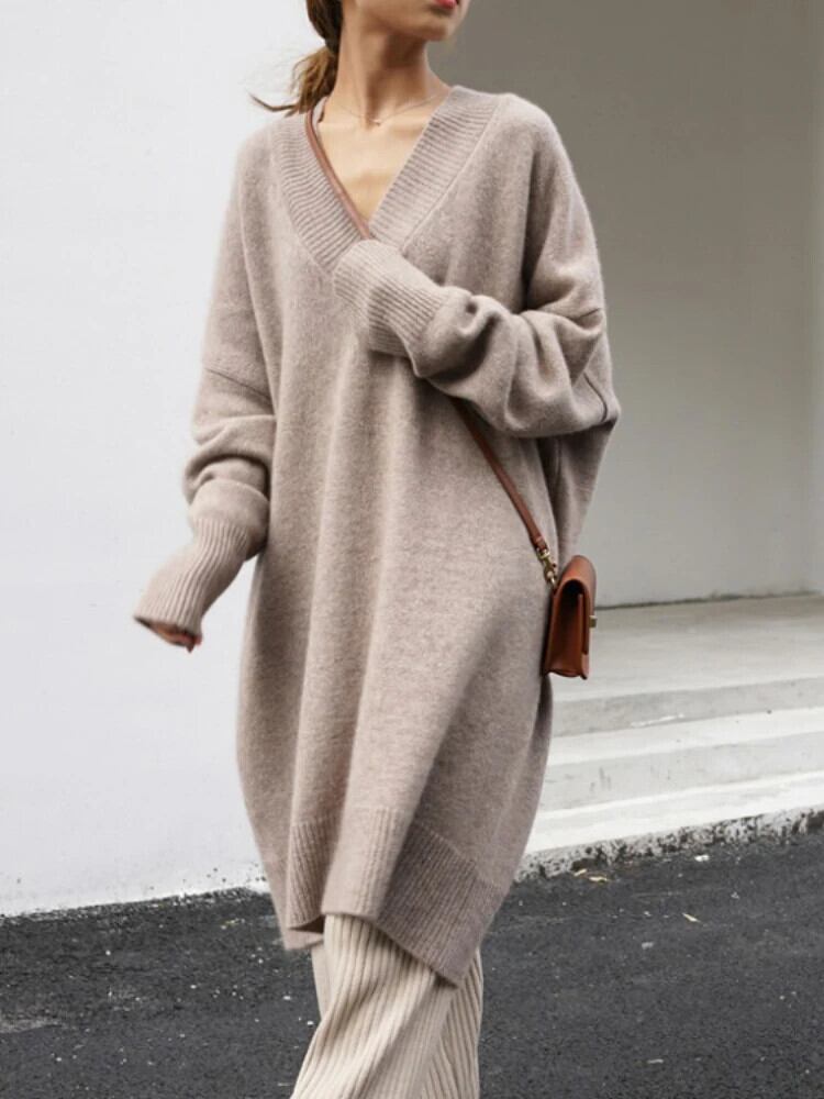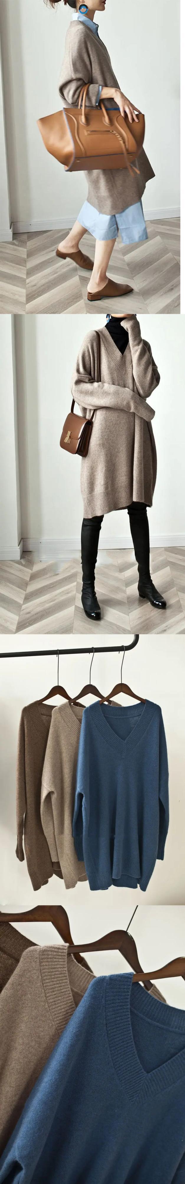 送料無料 レディースセーター長袖トップ 2023 秋冬固体プルオーバー V ネックニット暖かいルーズジャンパートップス ロング オータム 秋物 ウィンター 冬物 Vネック ソリッドカラー AE0807770429514653