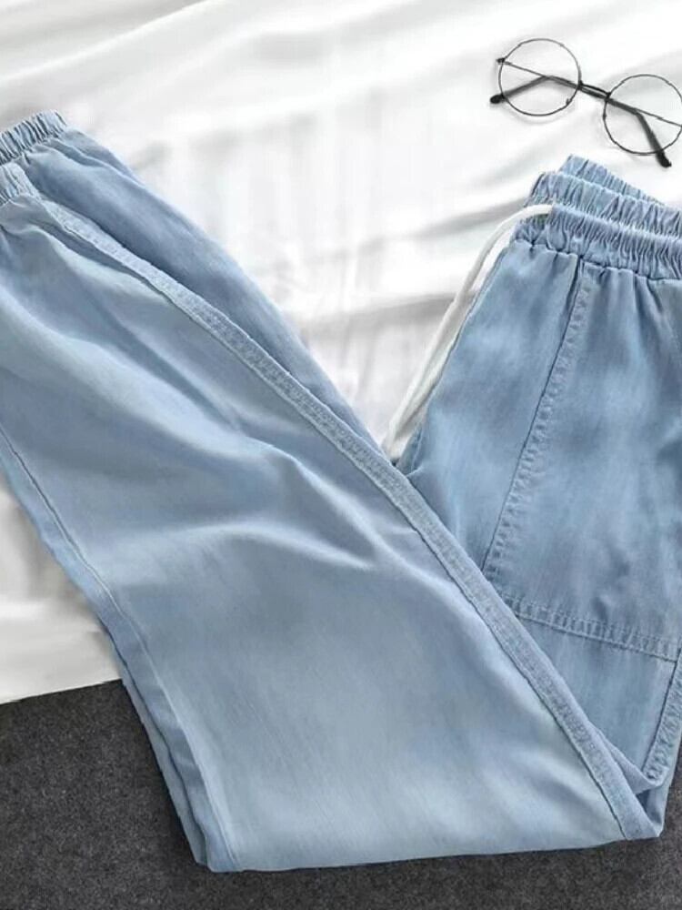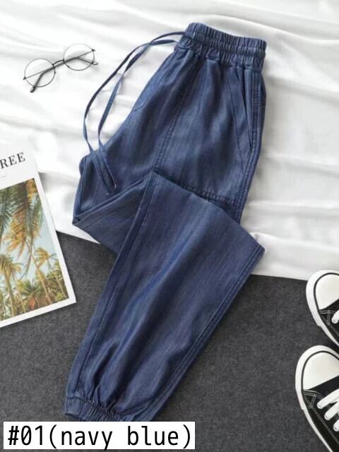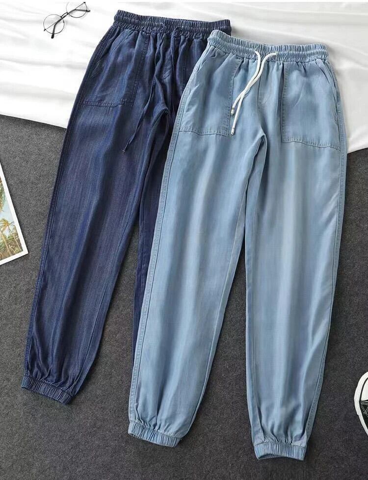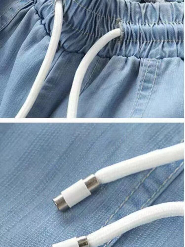 送料無料 女性パンツ夏 2023 緩いレースアップ薄型弾性女性ジーンズオーバーサイズズボンソフトクールデニムパンツ エラスティック 伸縮 サマー 夏物 AE0807772580226759