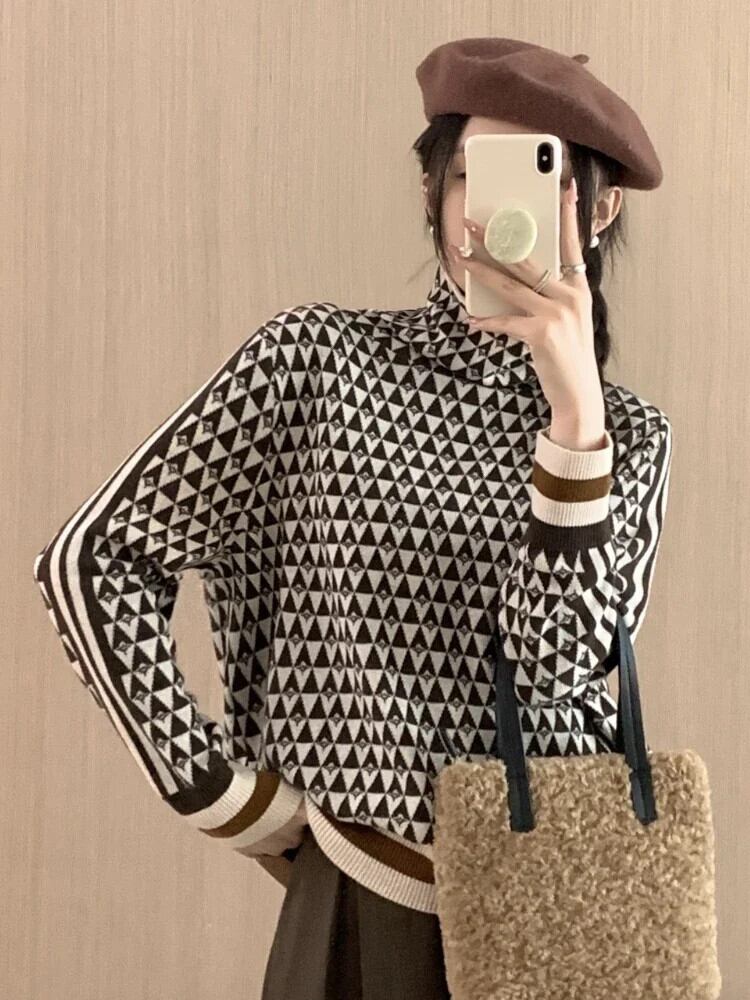 送料無料 冬の女性のタートルネックセーターオーバーサイズ長袖トップ秋ルーズジャンパー黒暖かいニットプルオーバー女性 ロング ブラック オータム 秋物 ウィンター 冬物 AE0807775608666217