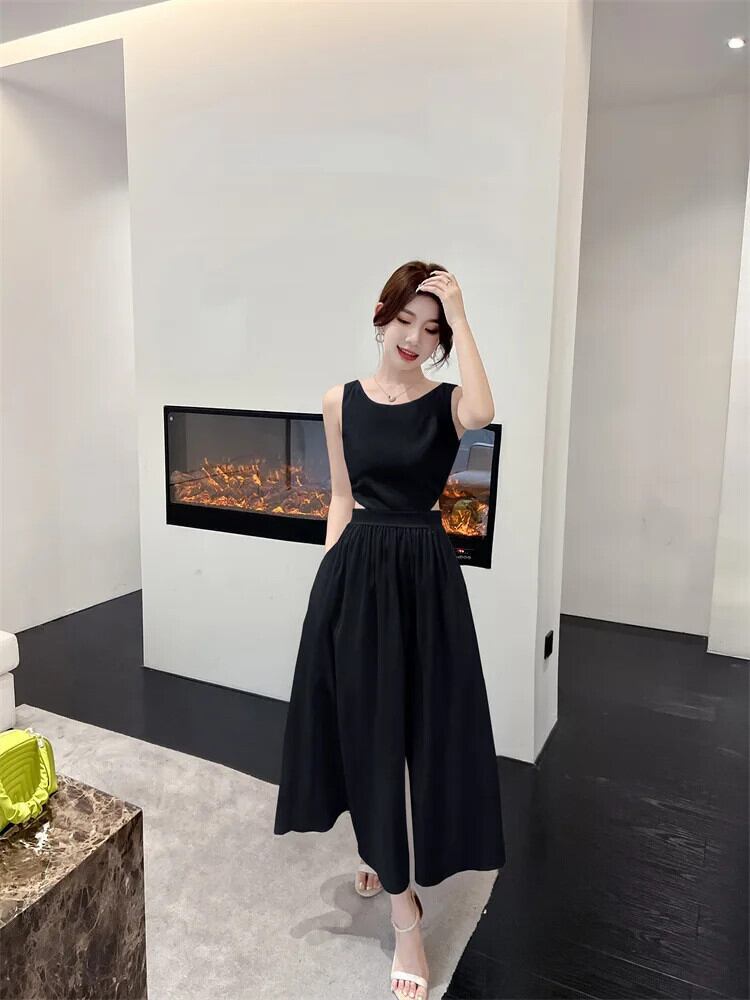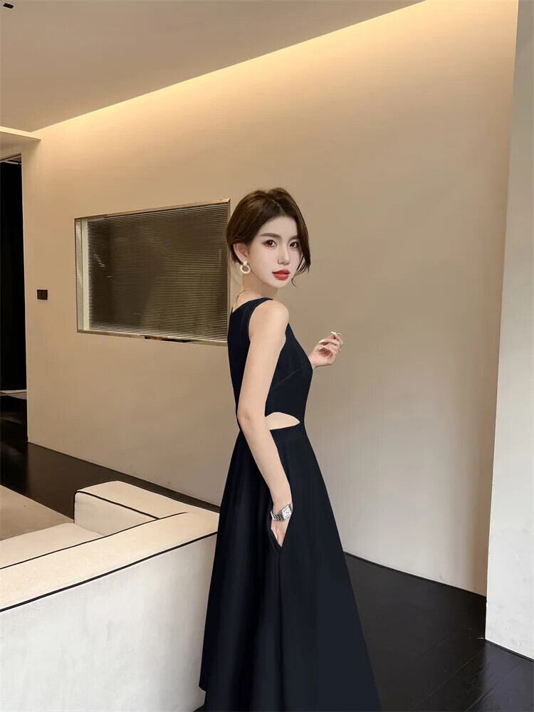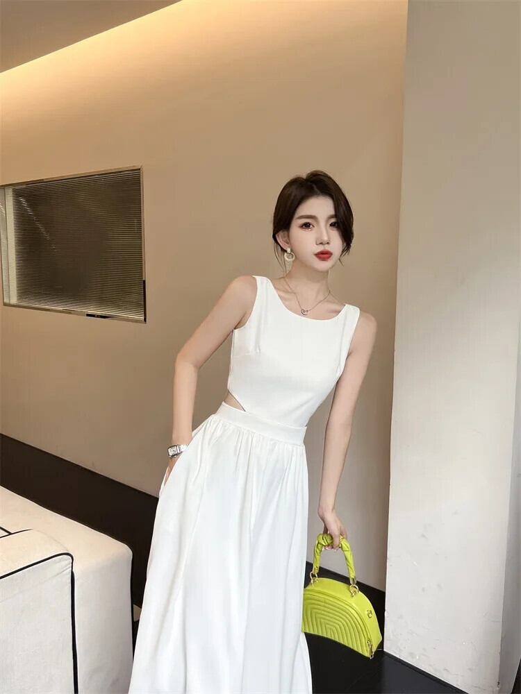 送料無料 サマードレスの女性 2023 レトロソリッドパーティーホワイトドレスロングドレス O ネックノースリーブマキシドレス 夏物 Oネック ソリッドカラー AE0807712238501694