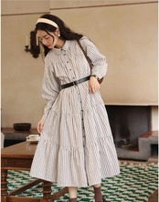 送料無料 秋ドレス 2023 ドレス気質ストライプベルトシンプルな A ライン長袖ドレスストリートフレンチローブ ロング オータム 秋物 ハーネス Aライン AE080779801028140 | 女性の為の通販サイト-fashion navi