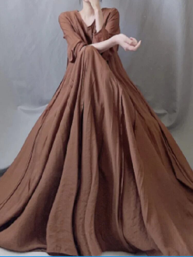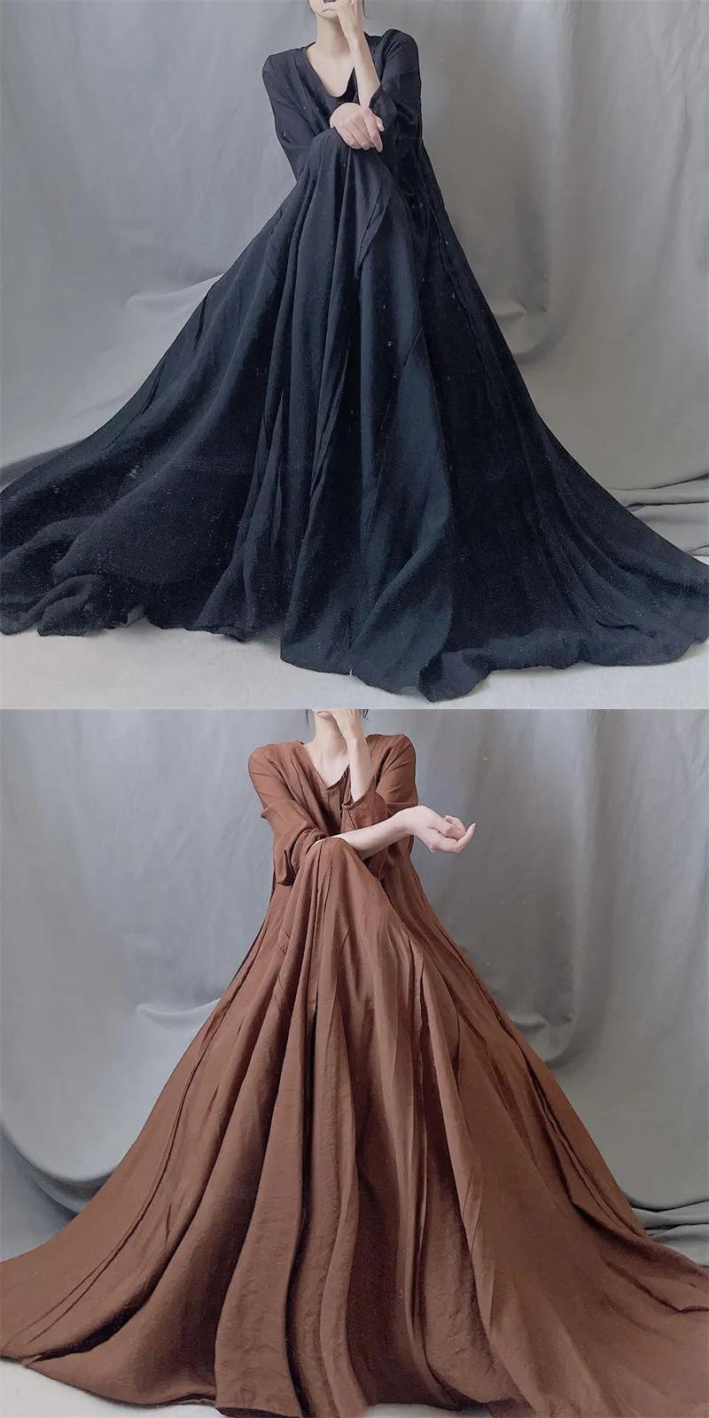 送料無料 ドレス女性の夏の女性のビーチ長袖ドレス無地妖精ビッグスイングオーバーサイズボヘミアンドレス ロング サマー 夏物 ソリッドカラー AE0807726662844087