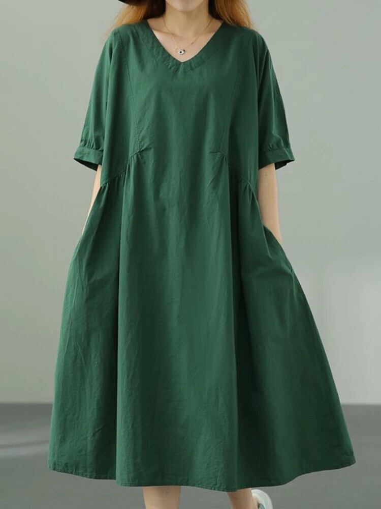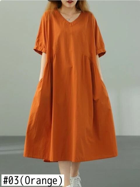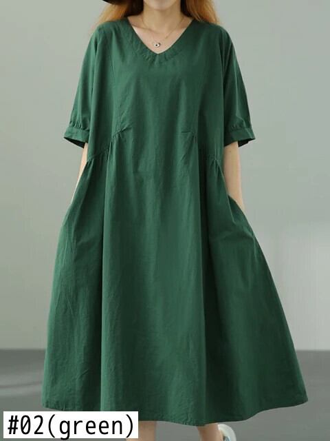 送料無料 サマードレスの女性 2023 ソリッドカラーのコットンロングドレスストリートルーズ V ネック特大ドレス 夏物 Vネック AE0807772761992890