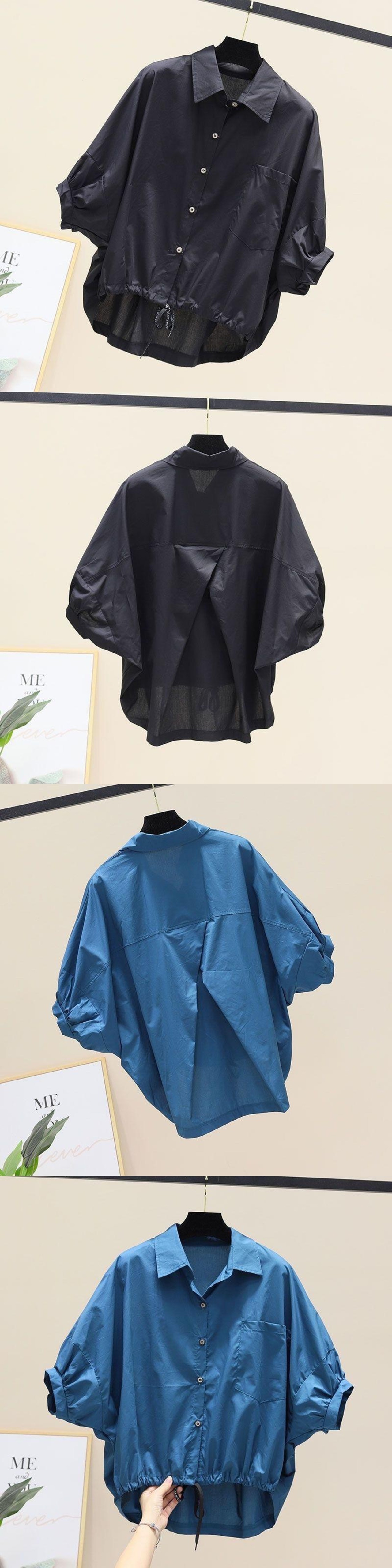 送料無料 レディーストップス黒シャツ夏半袖ルーズクロップトップブラウス女性シングルブレスト ショート ブラック ハーフスリーブ サマー 夏物 AE0807753483317625