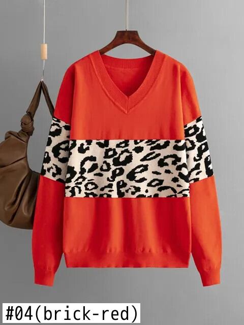 送料無料 秋冬 2023 ヒョウセーター女性長袖トップスヴィンテージニットプルオーバー特大セーター女性のジャンパー ロング オータム 秋物 ウィンター 冬物 ビンテージ AE0807767107117731