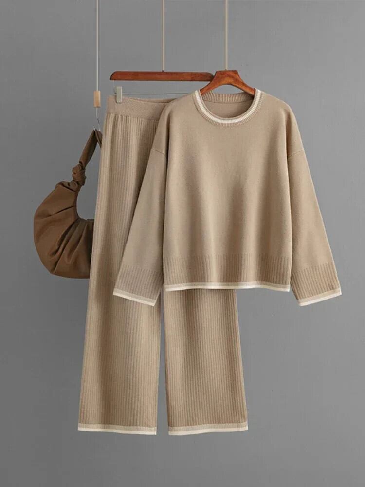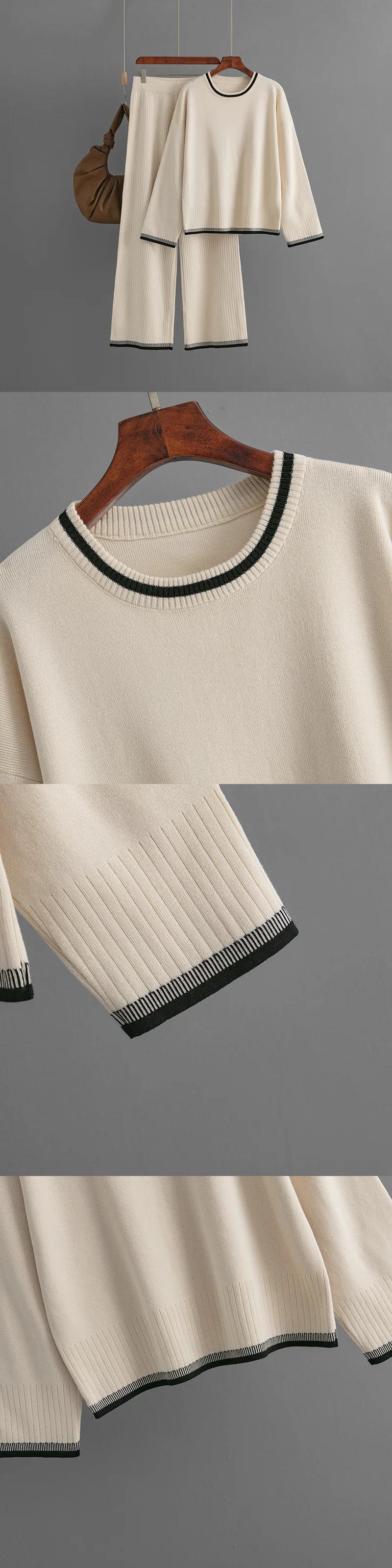 送料無料 秋/冬の女性 2 ピースセットルーズソリッドプルオーバーセーターニットワイドレッグズボンセットニットセットパンツセット オータム 秋物 ウィンター 冬物 ワイドパンツ ソリッドカラー AE0807719742646400