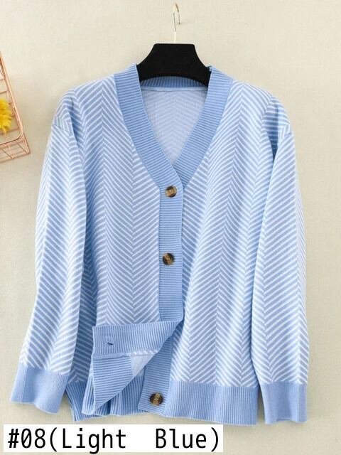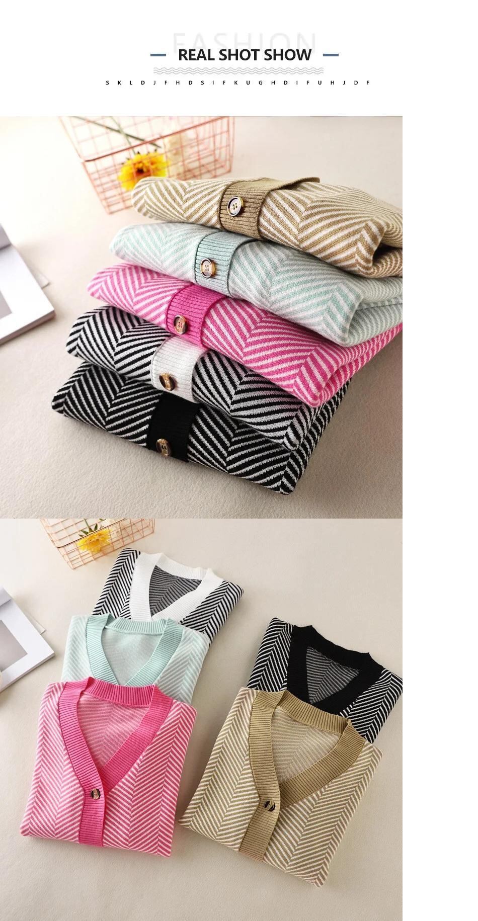 送料無料 女性の冬のブラウス V ネックストライプカーディガンセーター秋冬長袖トップルーズニットカーディガン ロング オータム 秋物 ウィンター 冬物 Vネック AE080771296347498