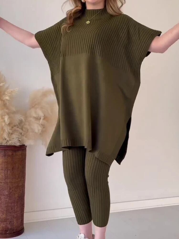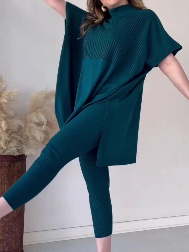 送料無料 春夏 2 点セットレディース衣装ラウンドネックバットウィングシャツオーバーサイズルーズニットウェアスーツレギンス女性パンツセット スプリング 春物 サマー 夏物 Oネック AE0807779655443851