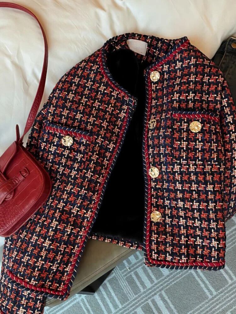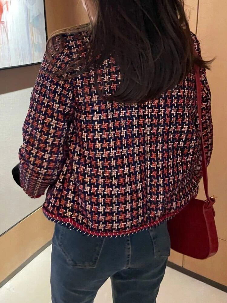 送料無料 トップジャケット冬の女性服 2023 長袖トップスツイードヴィンテージコートストリートオフィスレディ ロング ウィンター 冬物 ビンテージ 会社 学校 通勤や通学にも AE0807791048336791
