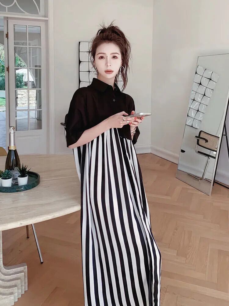 送料無料 ドレス女性 2024 夏のロングドレスルーズオーバーサイズシングルブレストドレスストリートヴィンテージドレスローブ サマー 夏物 ビンテージ AE0807741155002730 | 女性の為の通販サイト-fashion navi