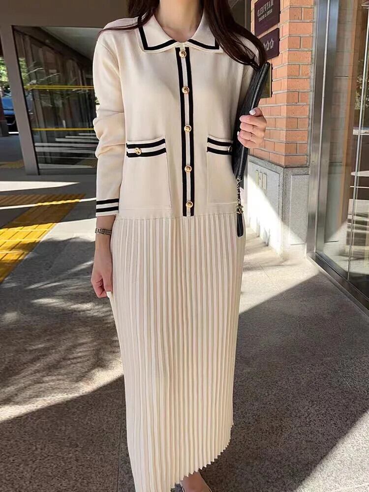 送料無料 ドレス女性 2024 秋冬長袖ニットドレスヴィンテージローブ固体ルーズセータードレス ロング オータム 秋物 ウィンター 冬物 ソリッドカラー ビンテージ AE0807739155871490