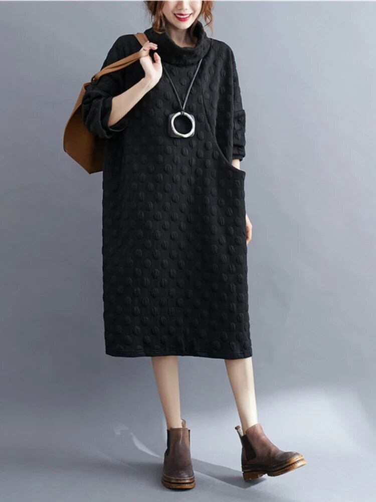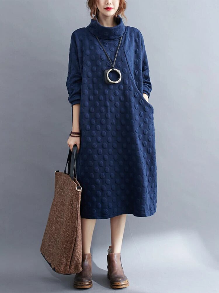 送料無料 長袖ドレス春ソリッドタートルネックルーズレディースロングドレス女性レディースストリートヴィンテージドレス スプリング 春物 ソリッドカラー ビンテージ AE0807792634381231
