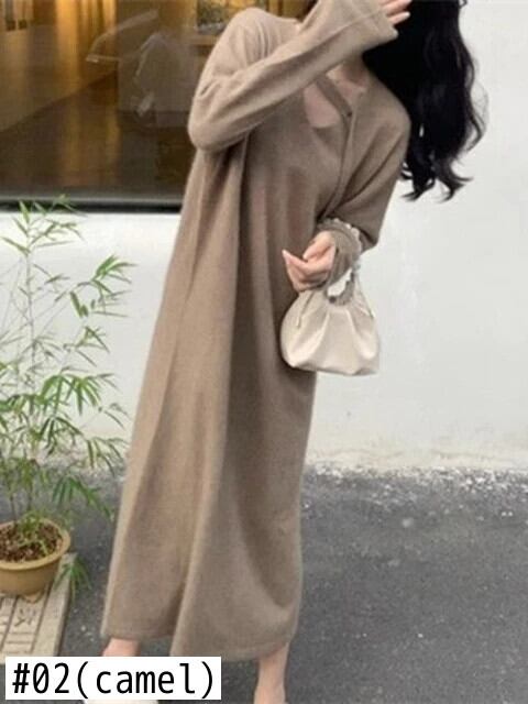 送料無料 ドレス女性ルーズロングシャツニットドレス秋/冬の気質固体 V ネック長袖セーター白スカートローブ ホワイト ウィンター 冬物 Vネック ソリッドカラー AE0807711215571630
