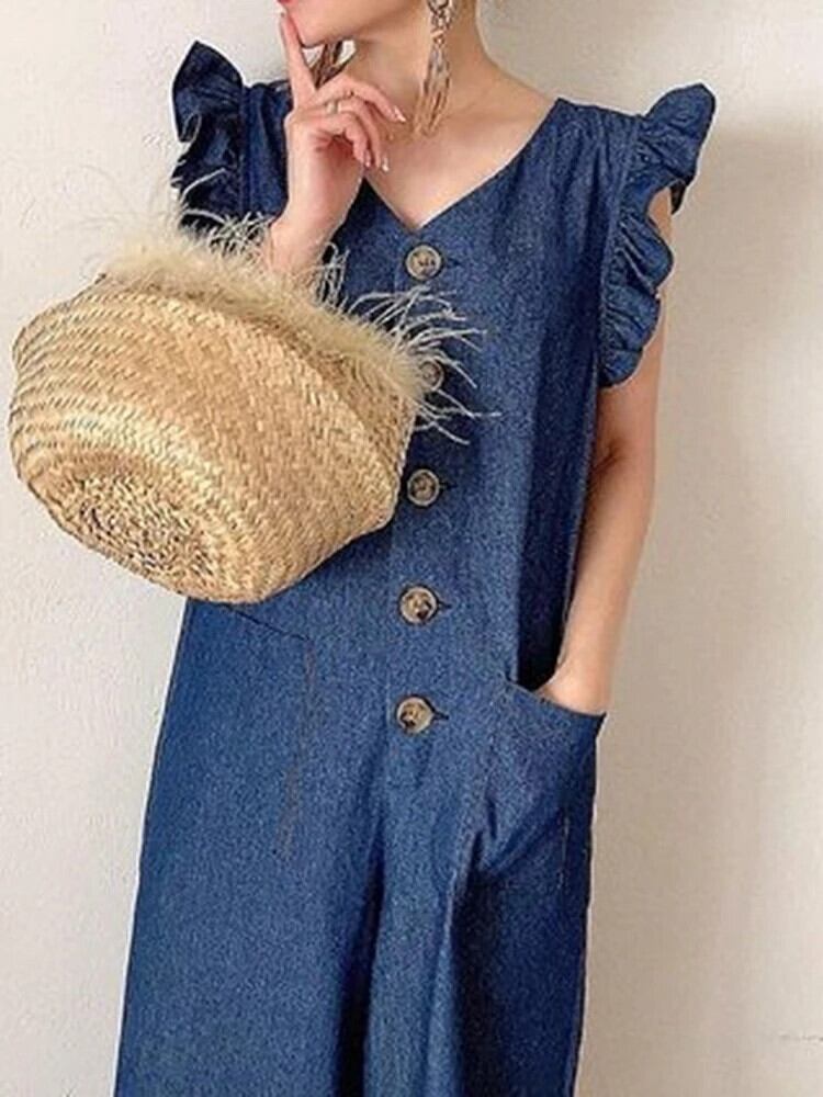 送料無料 ジャンプスーツの女性 2023 春夏ノースリーブルーズパーティーデニムジャンプスーツ女性のイブニング女性ジャンプスーツ スプリング 春物 サマー 夏物 AE0807721734421171