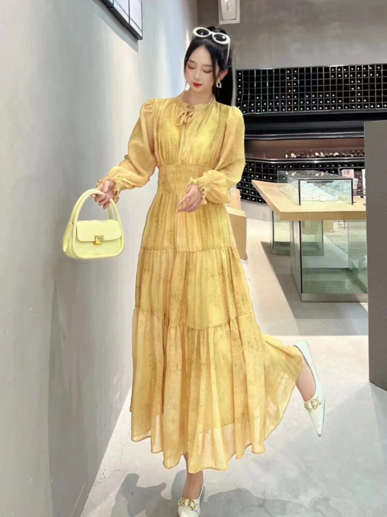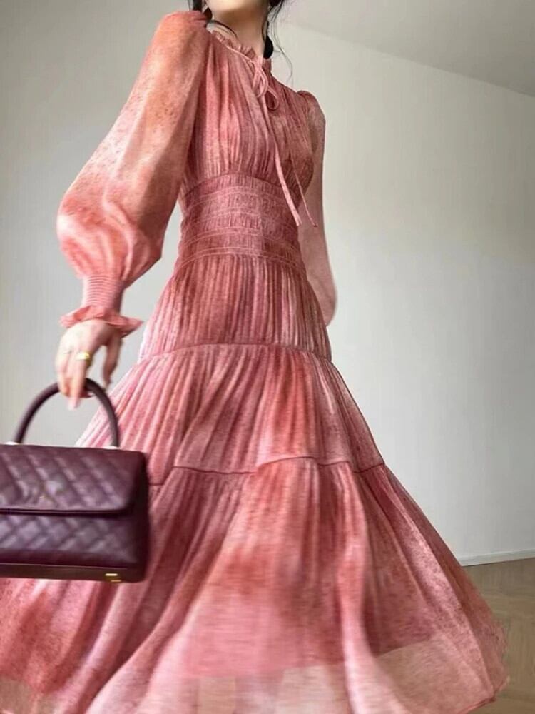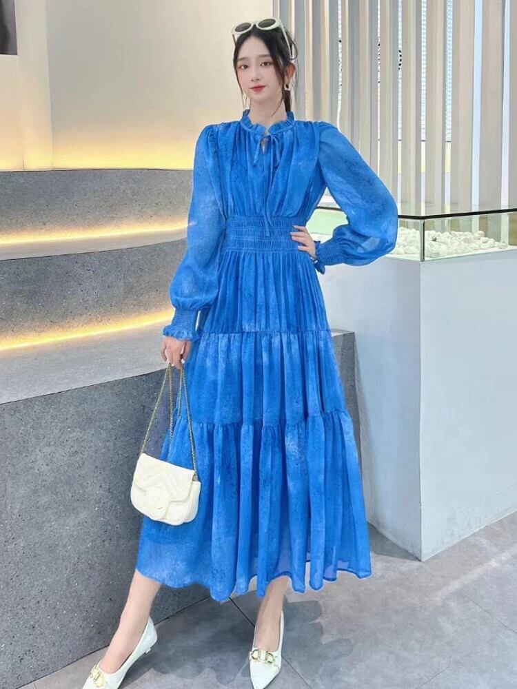 送料無料 ドレス女性 2023 夏ヴィンテージ花柄プリントランタンスリーブシフォンウエストローブストリート サマー 夏物 ビンテージ AE0807721028445764