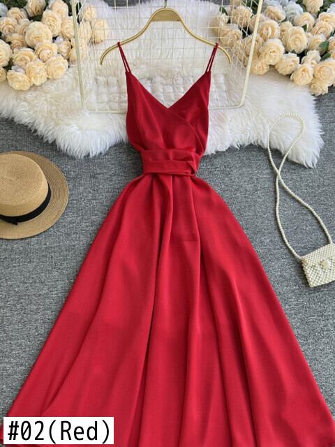 送料無料 2023 ヴィンテージドレス夏のビーチスカート海辺のセクシーなドレス背中の開いた休日無地 V ネックロングドレス女性 サマー 夏物 Vネック ソリッドカラー ビンテージ AE0807752529130481