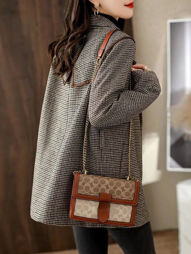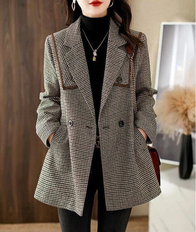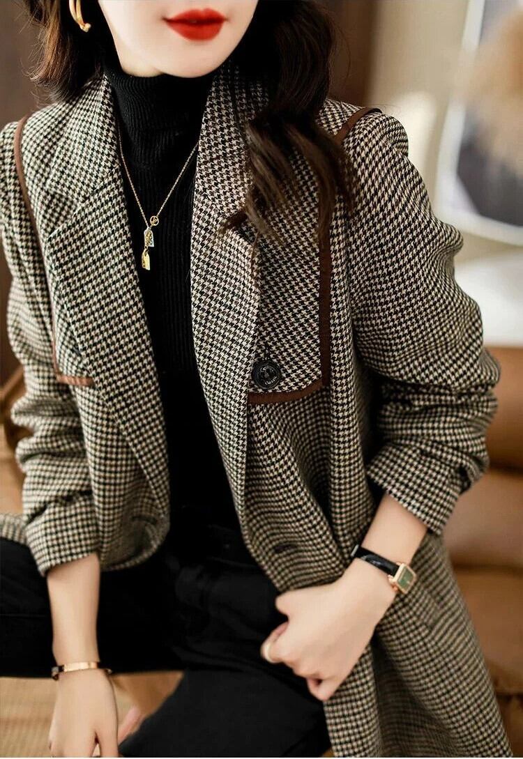 送料無料 シックな女性ジャケット秋の女性のコートオフィスチェック柄ベルトオーバーサイズブレザー女性 2023 オータム 秋物 ハーネス 会社 学校 通勤や通学にも AE0807732141202722
