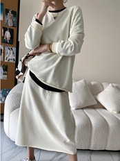 送料無料 2 点セットスカートトップ春秋固体トレーナールーズスカートセットマッチングセットレディースストリート スプリング 春物 オータム 秋物 ソリッドカラー AE080772168765882