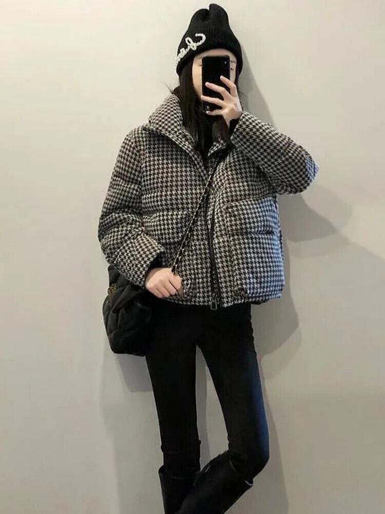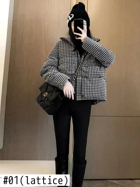 送料無料 冬のジャケットの女性 2023 女性コートスーパーホットパーカー格子ルーズショートオフィスレディウォームトップストリート ウィンター 冬物 会社 学校 通勤や通学にも AE0807744161151895