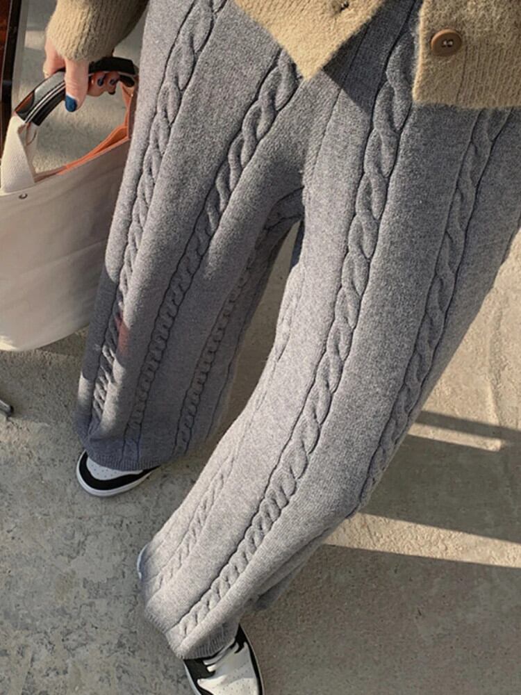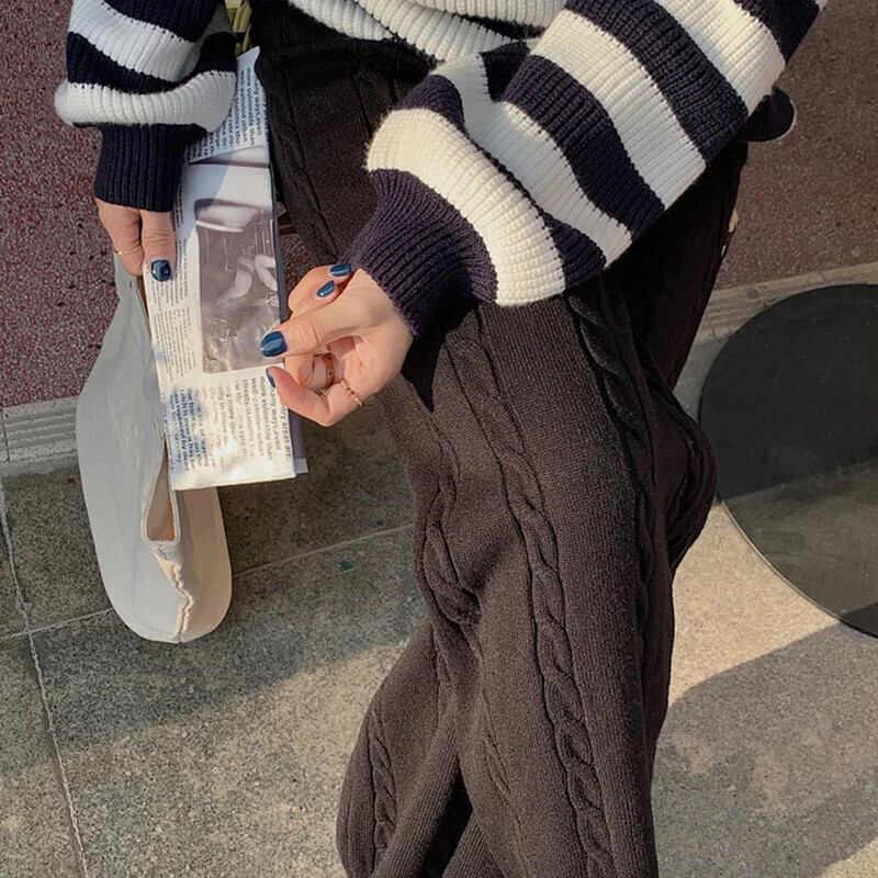 送料無料 2023 女性のズボンニットワイドレッグパンツ女性の秋冬ストレートチューブマイクロトランペットモップロングパンツ オータム 秋物 ウィンター 冬物 AE0807749753950070