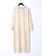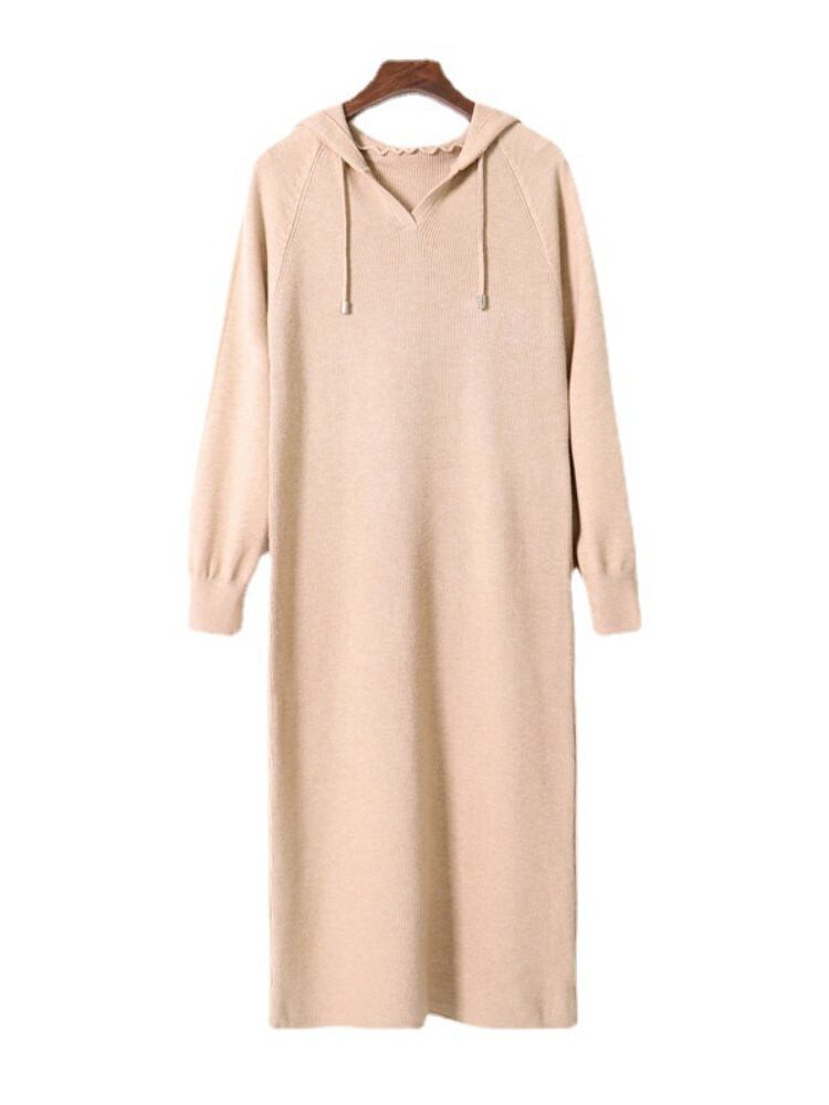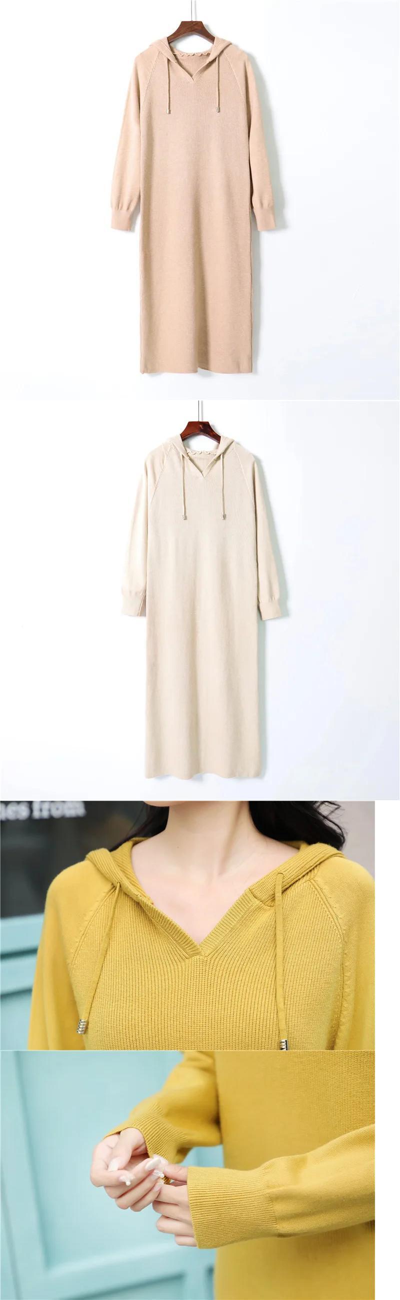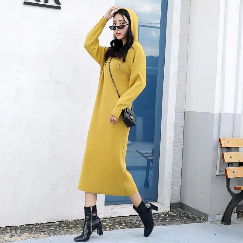 送料無料 ドレス女性秋冬フード付き長袖ニットドレスヴィンテージ固体ルーズセータードレス ロング オータム 秋物 ウィンター 冬物 ソリッドカラー ビンテージ AE0807717394864150