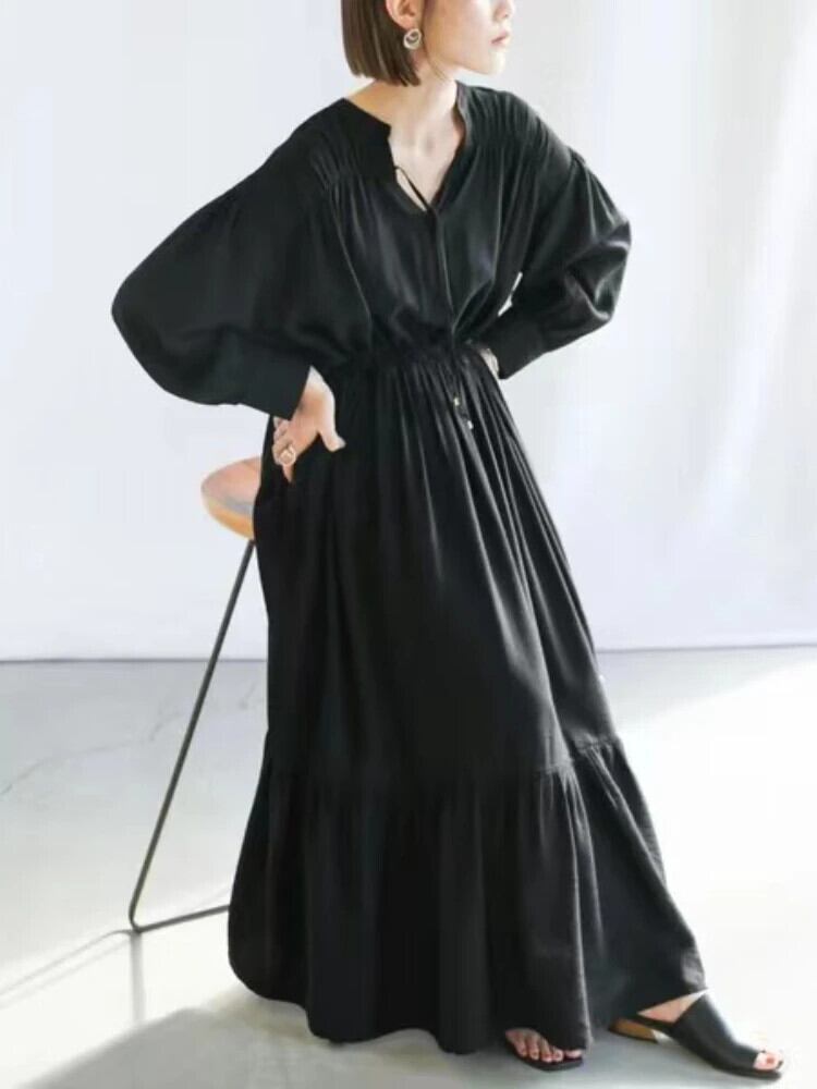 送料無料 ドレス女性春夏長袖 V ネックヴィンテージローブオーバーサイズルーズストリートドレス ロング スプリング 春物 サマー 夏物 Vネック ビンテージ AE0807713792932391