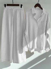 送料無料 女性の 2 ピースレトロオーバーサイズコットンリネンシャツプラスウエストスラックススーツ女性のスウェットシャツセットルーズパンツ女性 AE0807718113060841 | 女性の為の通販サイト-fashion navi