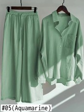 送料無料 女性の 2 ピースレトロオーバーサイズコットンリネンシャツプラスウエストスラックススーツ女性のスウェットシャツセットルーズパンツ女性 AE0807718113060841