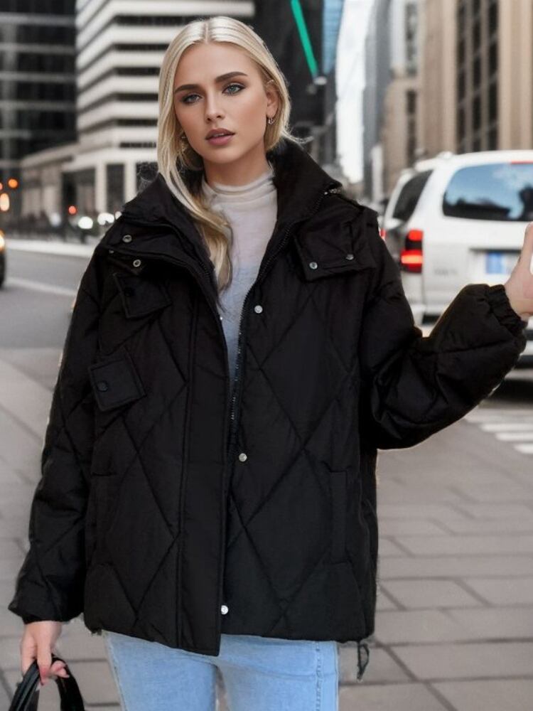 送料無料 女性の冬のジャケット 2023 女性コートヴィンテージオーバーサイズ黒ジャケット女性厚い固体トップスフード付きパーカー ブラック ウィンター 冬物 ソリッドカラー ビンテージ AE080773651190513