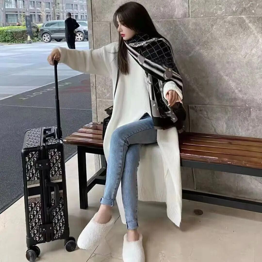 送料無料 秋冬女性ニットプルオーバーロングドレス O ネックソリッドスプリットルーズセータードレス気質女性服 オータム 秋物 ウィンター 冬物 Oネック ソリッドカラー AE0807780350308671