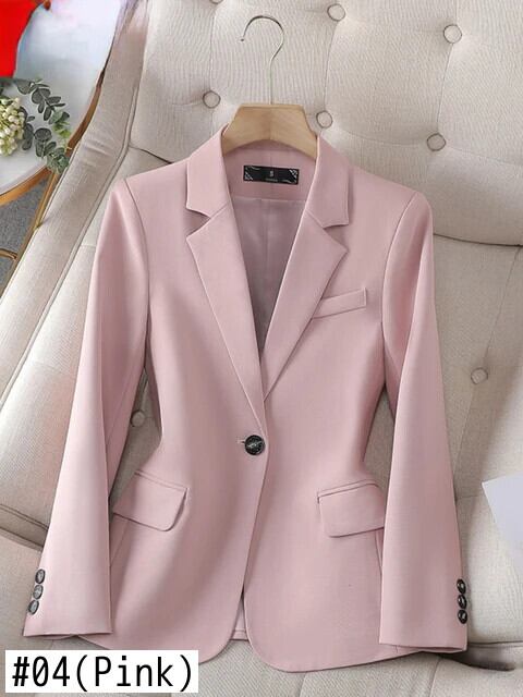 送料無料 春の女性のジャケットスーツピンクオフィスオーバーサイズ長袖ブレザースーツコート女性トップス ロング スプリング 春物 会社 学校 通勤や通学にも AE0807746845897606