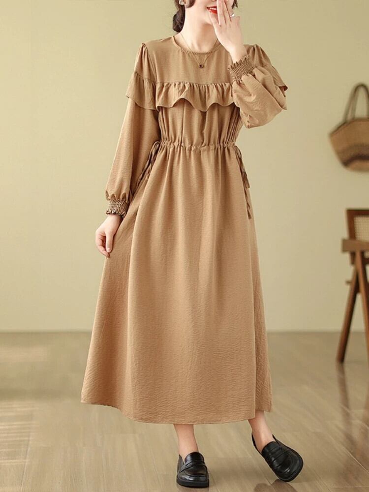 送料無料 ドレス女性 2024 春夏ソリッド O ネック特大ドレスルーズグリーン長袖ドレス女性のローブ ロング スプリング 春物 サマー 夏物 Oネック ソリッドカラー AE0807711882326600