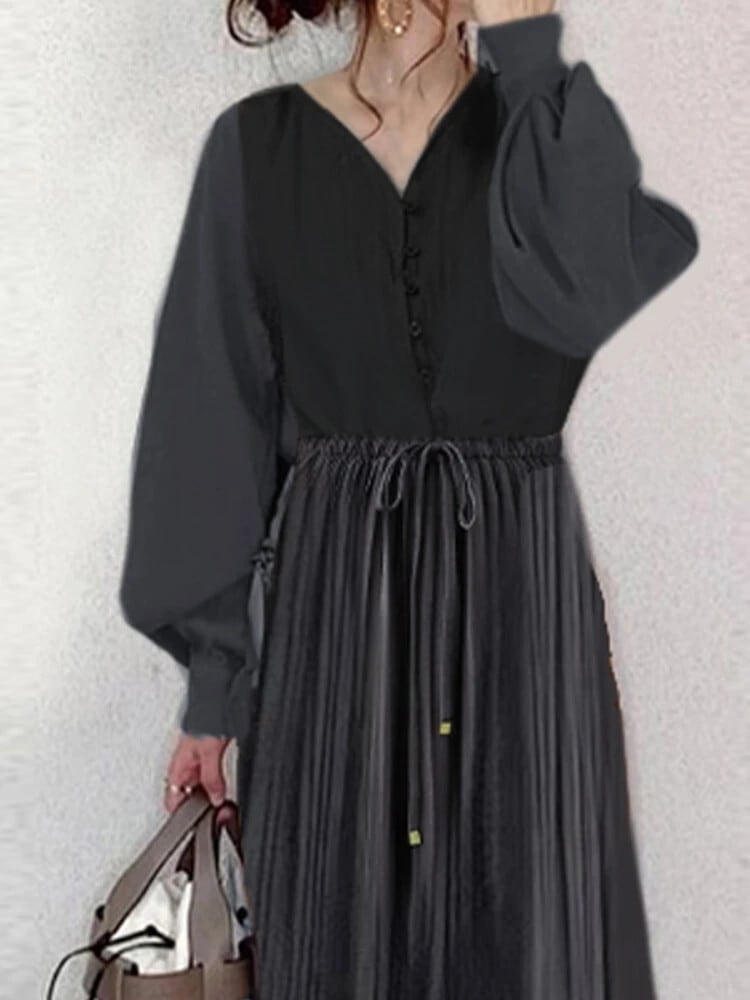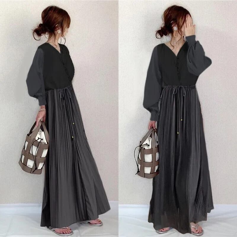 送料無料 春夏 2024 女性のロングスカート長袖 V ネックレースドレスオフィスレディソリッドドレス女性ローブマキシドレス スプリング 春物 サマー 夏物 Vネック ソリッドカラー 会社 学校 通勤や通学にも AE0807786648457089
