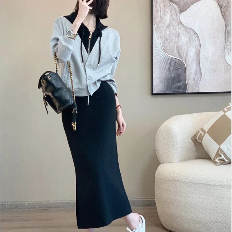 送料無料 2 点セットスカートトップ 2023 秋ソリッドフード付きスウェットシャツスカートセットマッチングセットレディース オータム 秋物 ソリッドカラー AE0807784534372063 | 女性の為の通販サイト-fashion navi