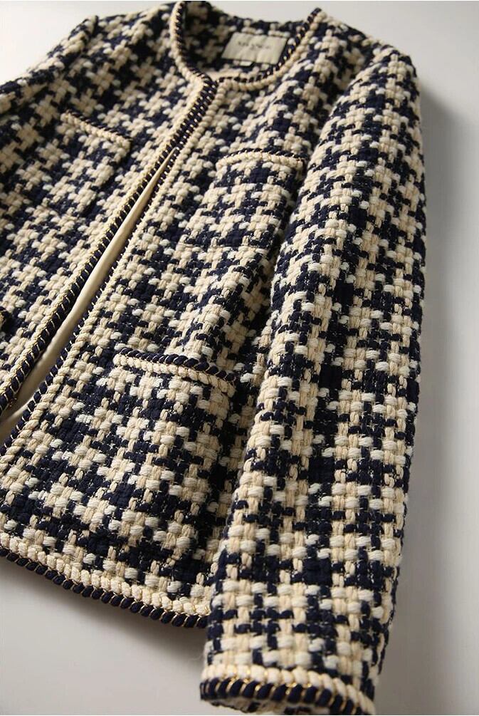 送料無料 レディース秋コートジャケット女性レディヴィンテージストリートチェック柄ツイードシックカーディガン生き抜く オータム 秋物 ビンテージ AE0807764506680220