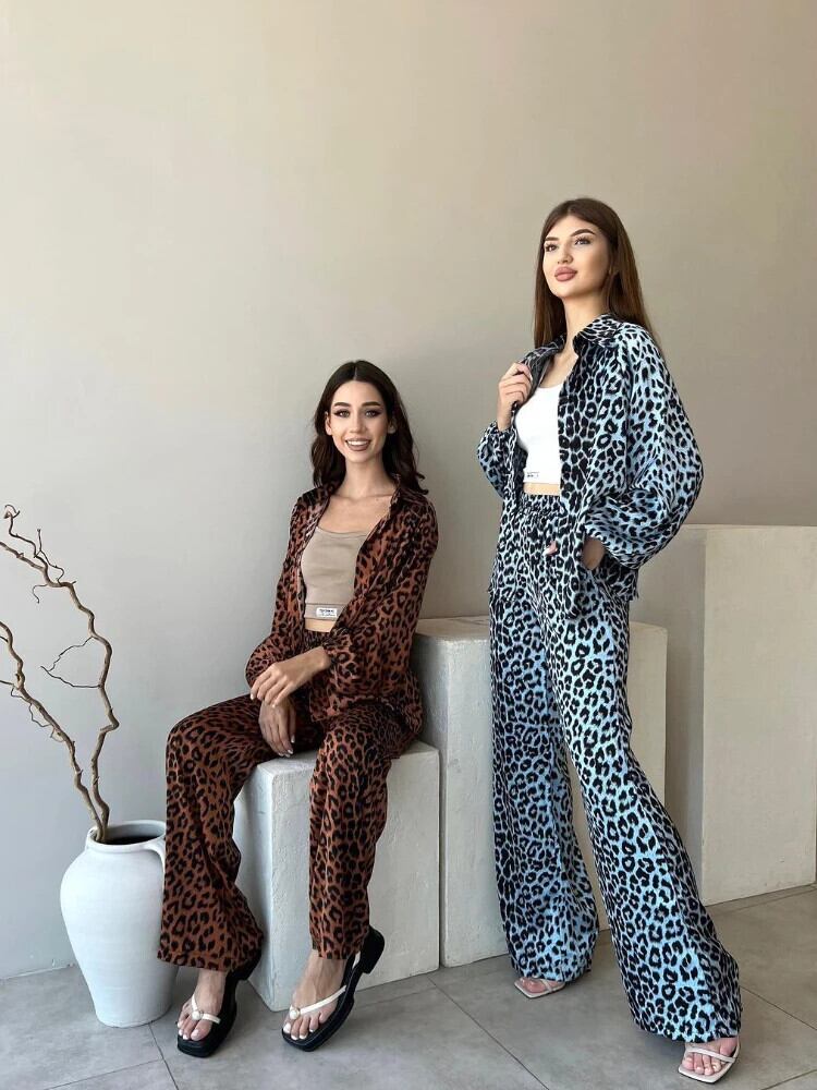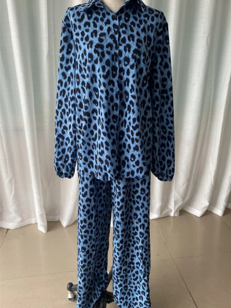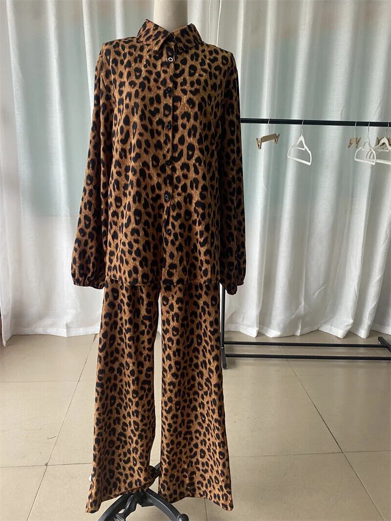 送料無料 春夏ルーズレジャーオーバーサイズスーツヒョウ長袖ツーピースセット女性ストリート 2024 マッチングパンツセット ロング スプリング 春物 サマー 夏物 AE0807780585566432