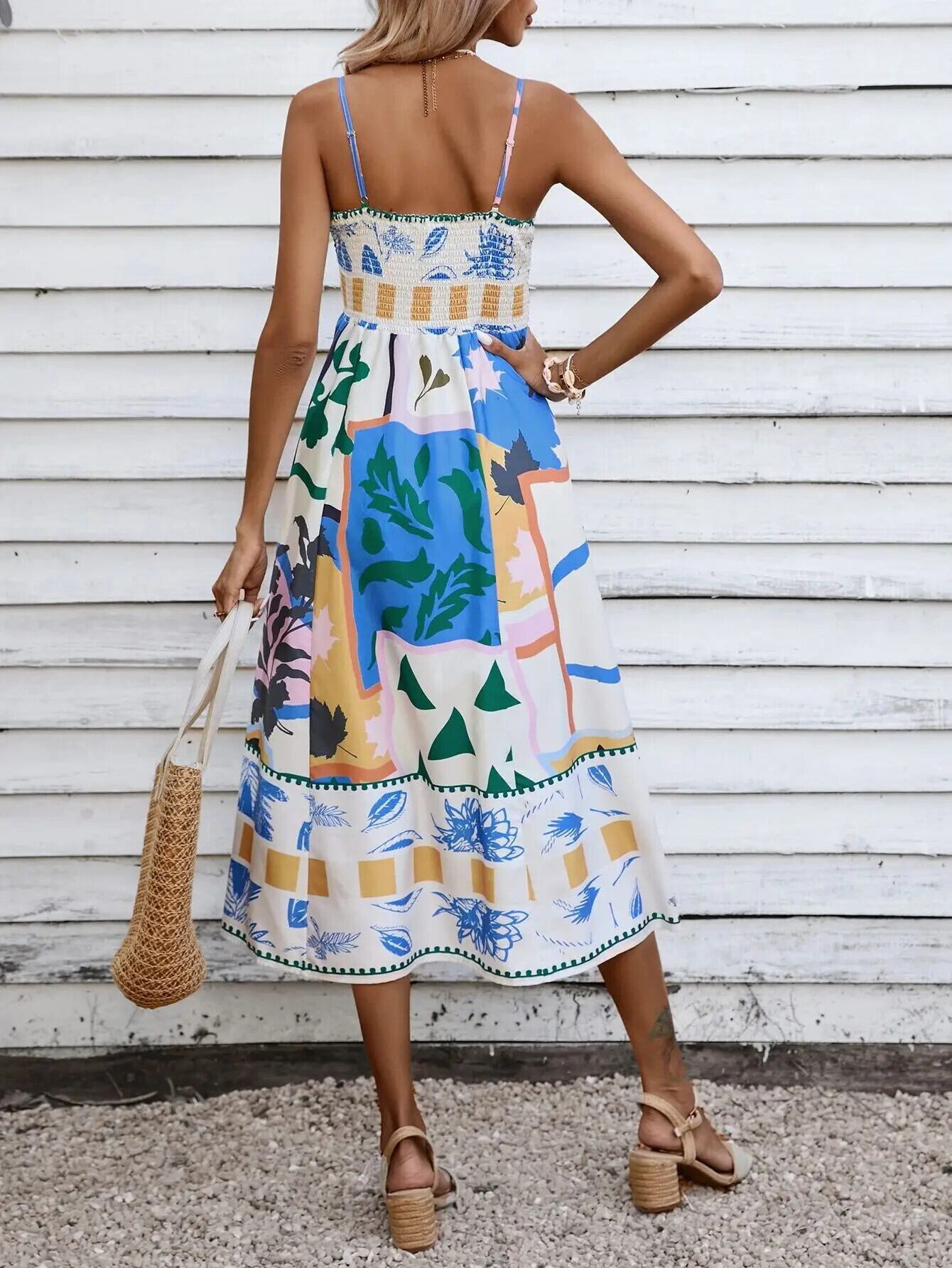 送料無料 サマードレスの女性プリントロングドレス女性スパゲッティストラップ背中の開いたセクシーなAラインドレスビーチヴィンテージローブ 夏物 ビンテージ AE0807798367348123 | 女性の為の通販サイト-fashion navi