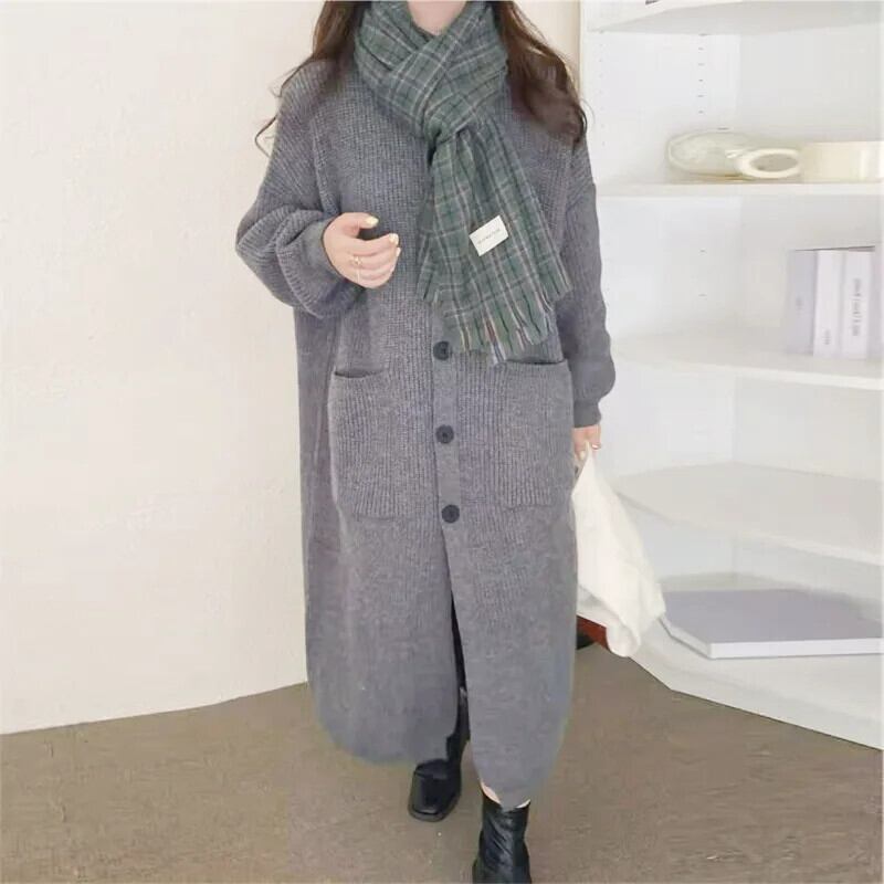 送料無料 女性セーター 2023 秋冬固体ロングニットカーディガンコート特大カーディガンニット女性トップス オータム 秋物 ウィンター 冬物 ソリッドカラー AE080774240992001