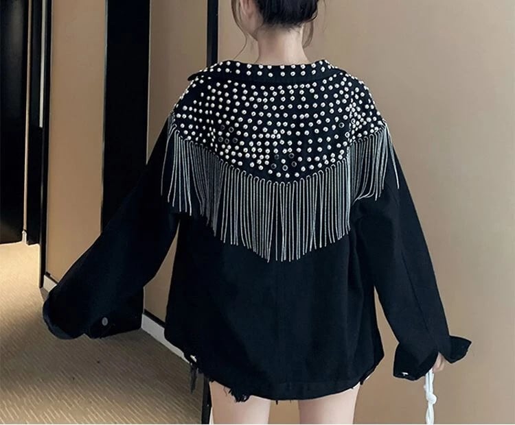 送料無料 秋の女性のデニムジャケットリベットテルオーバーコートジーンズジャケットトップスルーズコートシングルブレスト黒生き抜くストリート ブラック オータム 秋物 AE0807718614546027