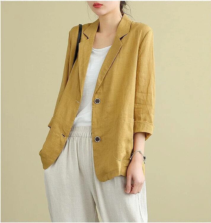送料無料 コットンリネン小さなスーツの女性 2023 春夏薄手のコートトップスオフィスレディブレザージャケット スプリング 春物 サマー 夏物 会社 学校 通勤や通学にも AE080777268052626