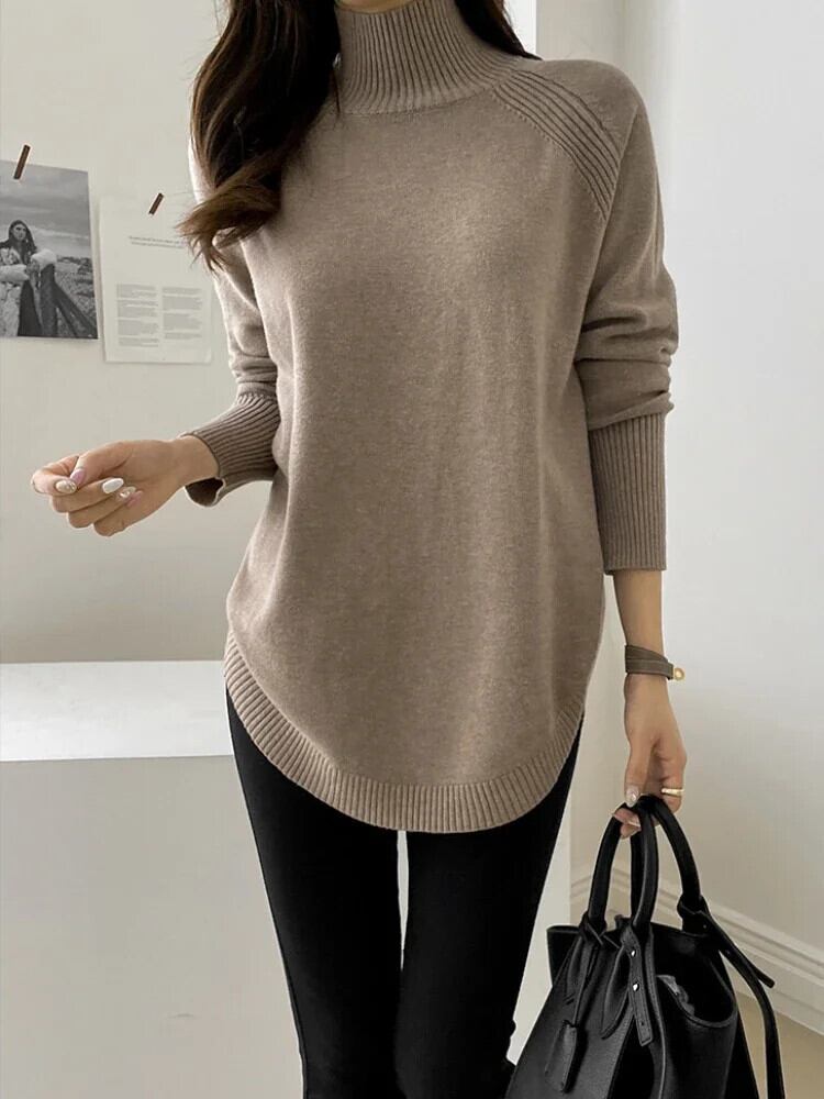 送料無料 セーター女性 2023 秋冬ルーズレジャーニットタートルネック長袖トップストリート固体ニットプルオーバー ロング オータム 秋物 ウィンター 冬物 ソリッドカラー AE0807718658321682
