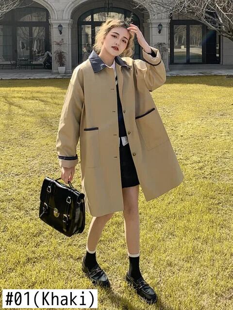 送料無料 女性コート 2023 秋/冬シングルブレストルーズトレンチコート長袖トップスカーキジャケット ロング オータム 秋物 ウィンター 冬物 AE0807731933937800