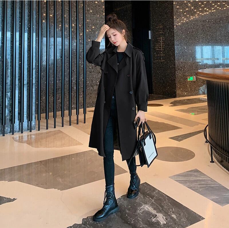 送料無料 冬服女性固体ラペル二列ボタンロングウインドブレーカー女性ワークジャケットトレンチコート女性トップスオーバーコート ウィンター 冬物 ソリッドカラー AE0807746920059603