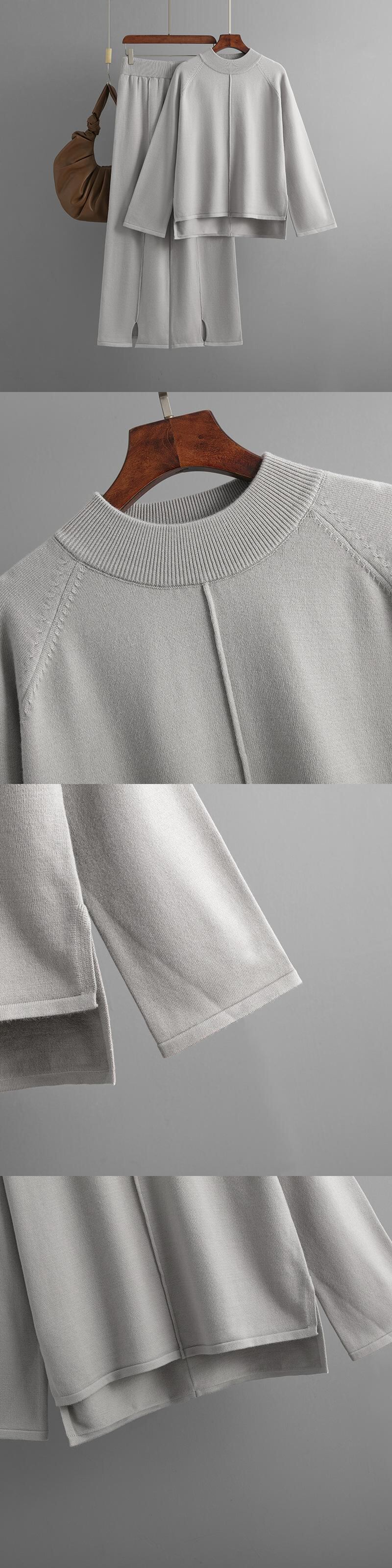 送料無料 秋/冬ルーズ固体ツーピースセット女性ニットセータープルオーバーワイドレッグパンツスーツスーツ2023 オータム 秋物 ウィンター 冬物 ワイドパンツ ソリッドカラー AE0807716712314089