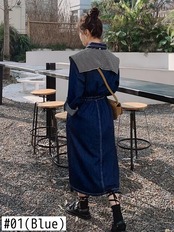 送料無料 ドレス女性 2023 秋ルーズ V ネックデニムロングドレスストリートローブヴィンテージ女性の オータム 秋物 Vネック ビンテージ AE0807755310855178